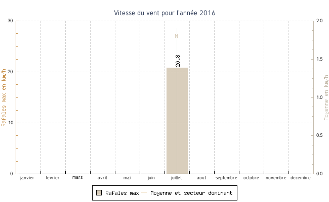 | juillet | 0.0 °C | 14.9 °C | 33.3 °C | 30.9 °C | 23.6 °C | 1.9 km/h | 20.8 km/h | N |